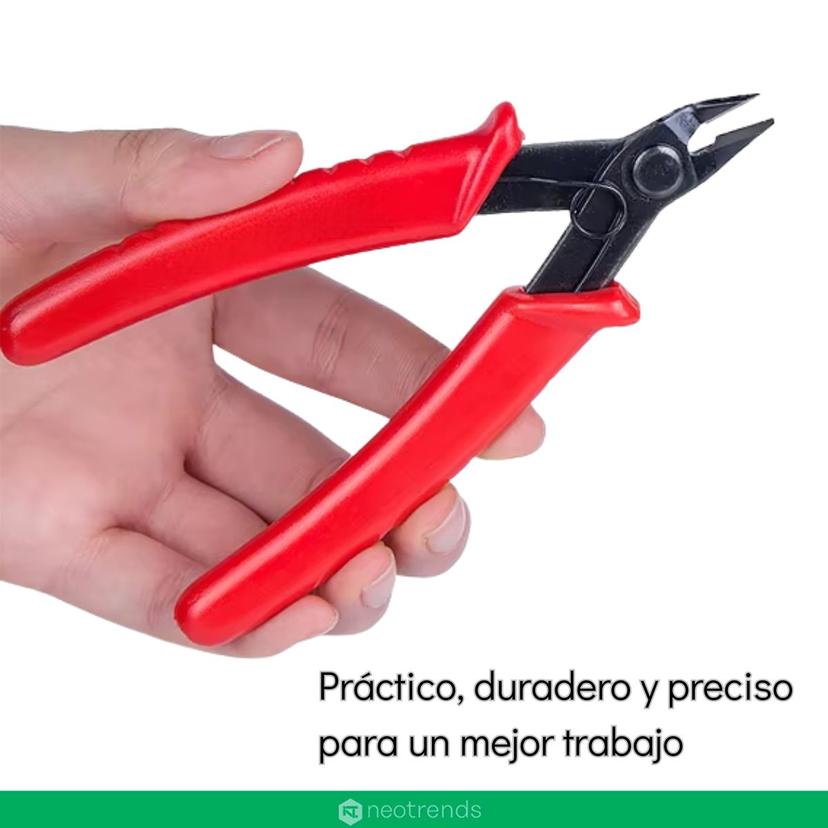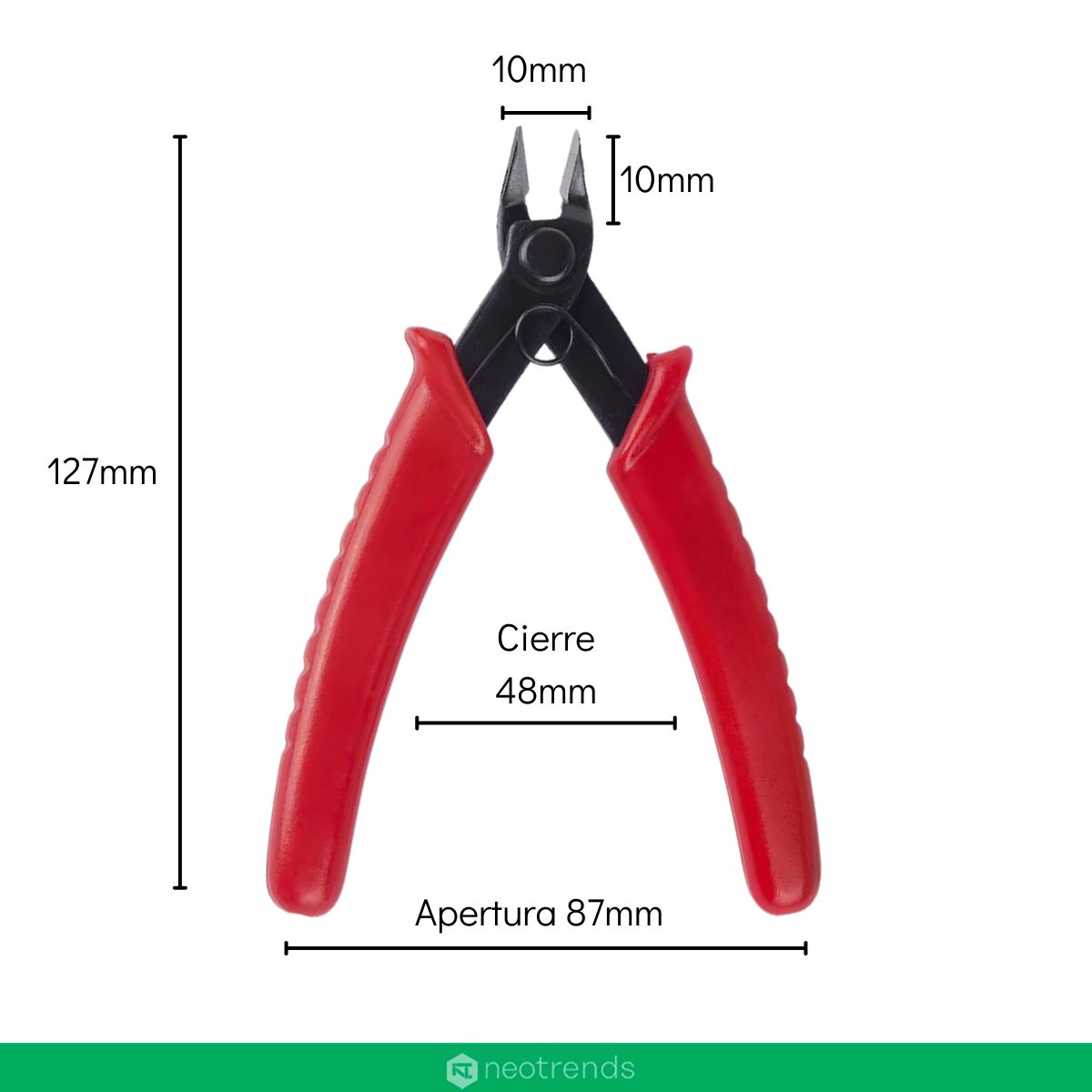 La herramienta ideal para quienes trabajan con electrónica, manualidades, modelismo y pequeños componentes. Diseñada para ofrecer cortes limpios y exactos, cuenta con un cuerpo fabricado en acero cromo vanadio, un material altamente resistente al desgaste y la corrosión, asegurando una larga vida útil incluso con uso intensivo.